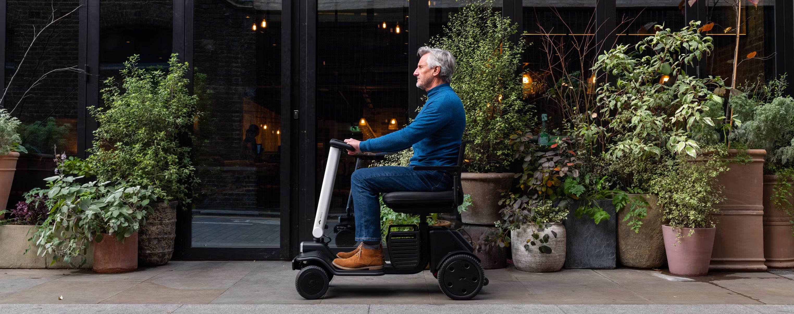 The WHILL Model R4 is a versatile 4-wheel mobility scooter designed for urban environments, offering a smooth, stable ride with precision dual-motor technology.