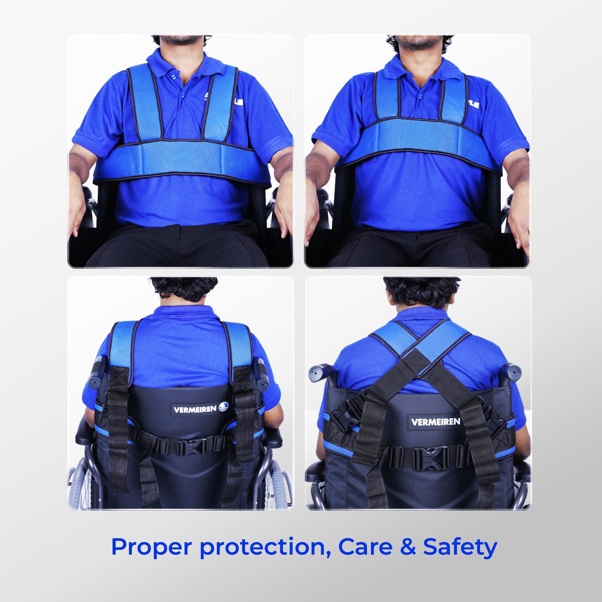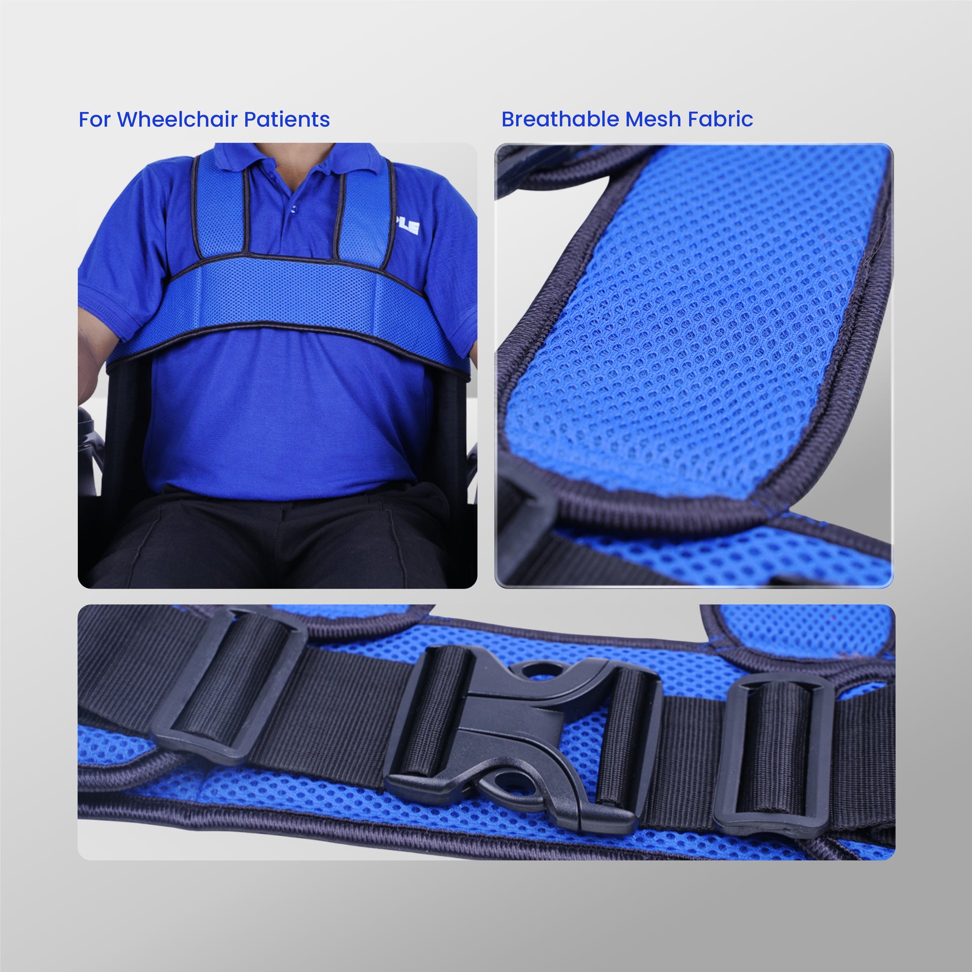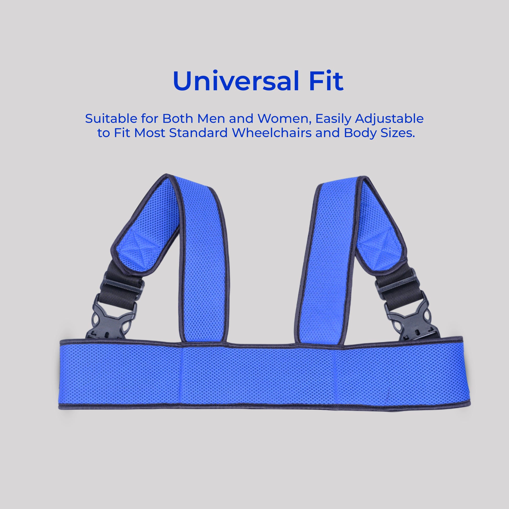 MEXPLE HarneX100 Wheelchair Safety Seat Belt | Double Coated & Breathable Mesh Fabric | Proper Protection & Safety | For Wheelchair Patients, Blue.