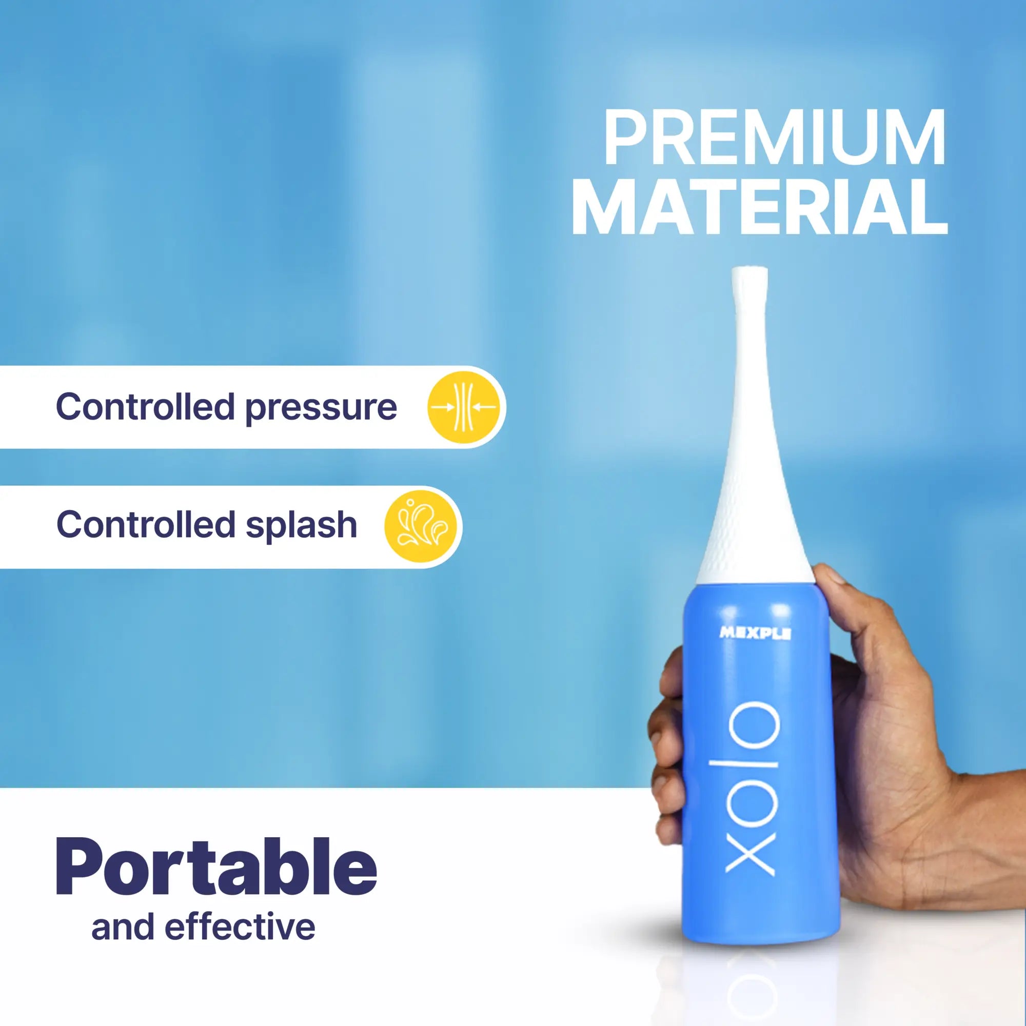 MEXPLE Xolo Handheld Portable Bidet Spray Bottle for Toilet | Retractable Bidet Angled Nozzle Jet Spray | For Baby, Women, Men or Bedridden Patient