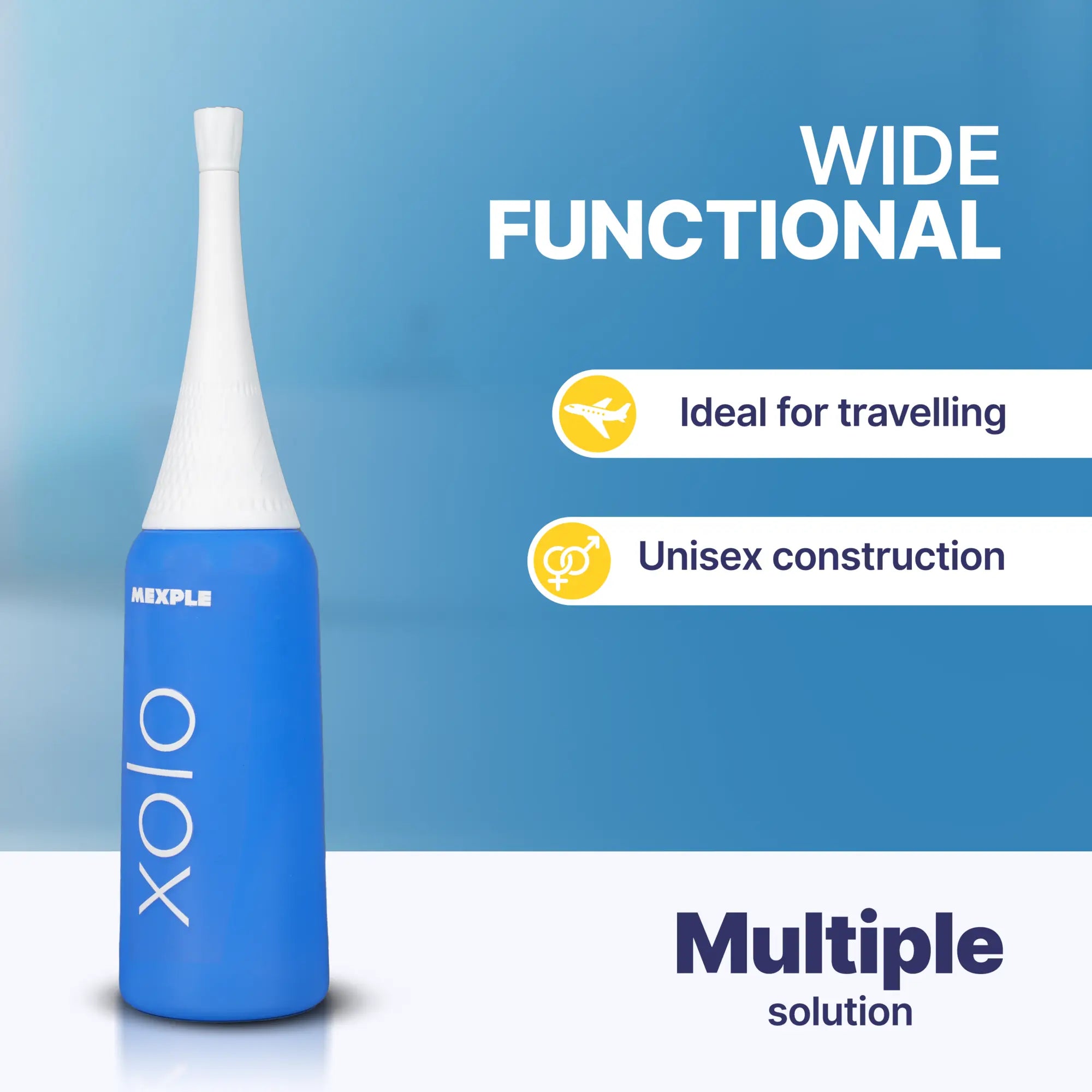 The MEXPLE Xolo Handheld Portable Bidet Spray Bottle offers a convenient, hygienic solution for personal care on the go. Featuring a retractable angled nozzle, it provides thorough and comfortable cleansing without awkward positioning, ideal for all users. Its compact, travel-friendly design fits easily into bags, making it perfect for travel, work, or public restrooms. With a leak-proof lid and spill-resistant design, the Xolo ensures safe, mess-free portability. The large water capacity allows for multiple uses without frequent refills, while the squeeze bottle feature lets users control water pressure for a customized cleanse. Suitable for babies, adults, and bedridden patients, this portable bidet provides a gentle, effective hygiene solution for any setting.