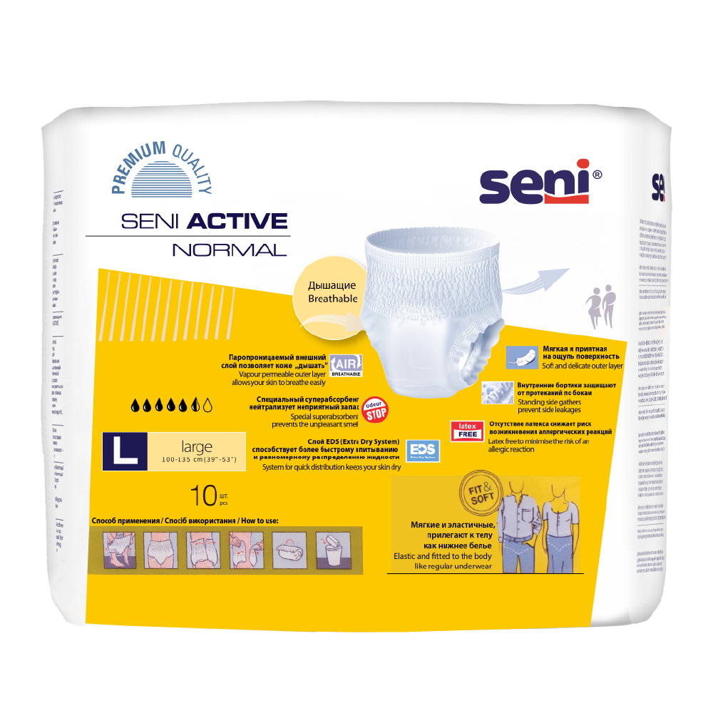 Breathable disposable underwear seni active normal is a perfect solution for people with light and moderate incontinence leading an active life or participating in physical rehabilitation