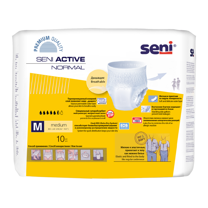 Breathable disposable underwear seni active normal is a perfect solution for people with light and moderate incontinence leading an active life or participating in physical rehabilitation