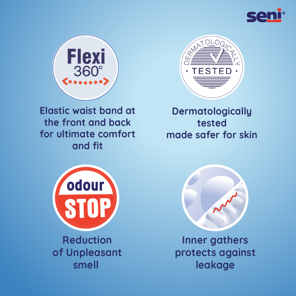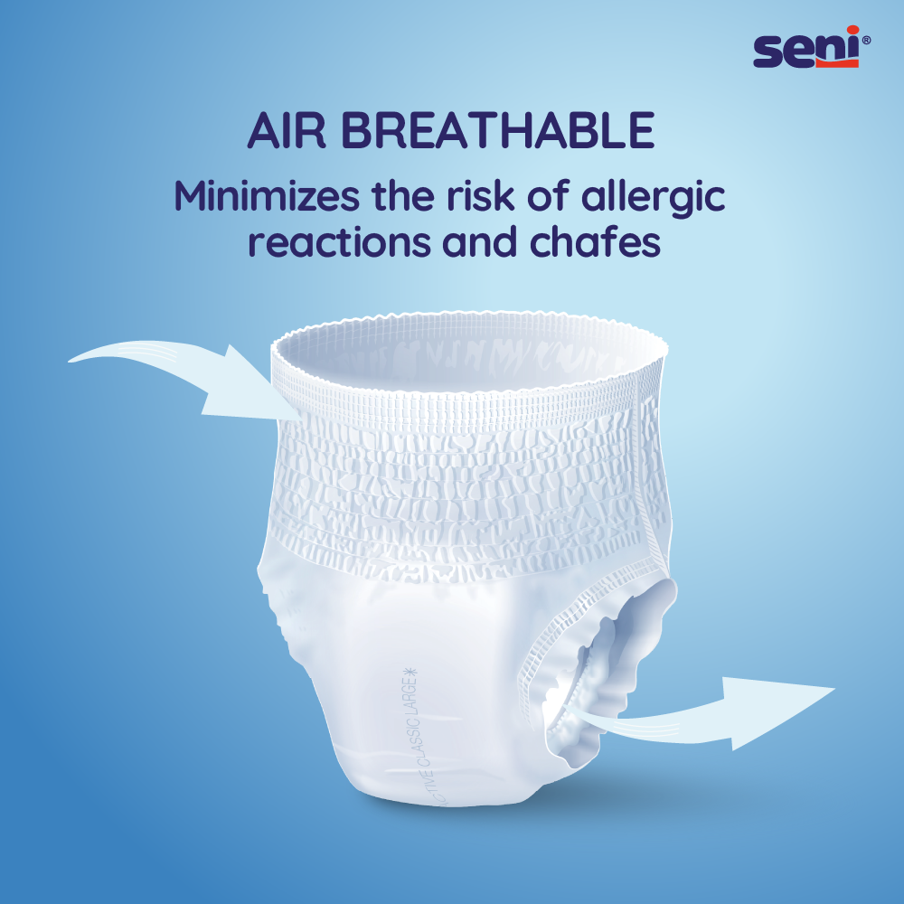 The essential feature of Seni products is air breathability free air circulation significantly lowers the risk of chafes skin irritations and bedsores development