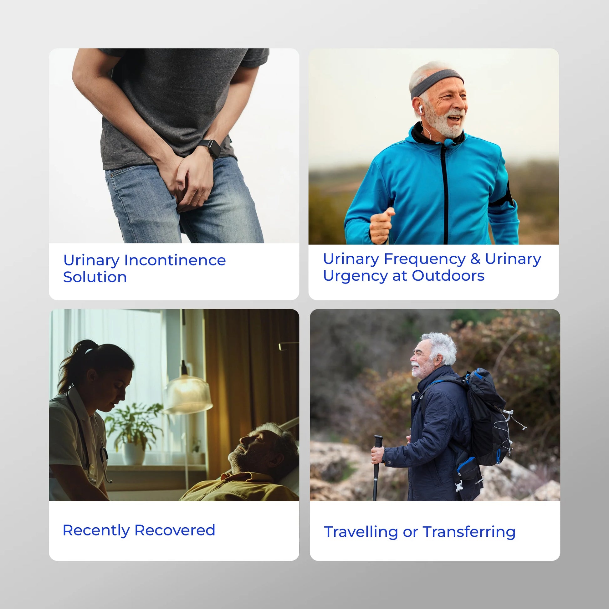 - ✅ EXTERNAL CATHETER FOR MEN: MEXPLE UroActive urine collector has been carefully designed back-flow prevention soft side, side lying can also ensures no leakage of urine, Re-useable, easy to clean. The set includes cotton underwear, silicon cavity, urine catheter and 2 X 750ml bags.