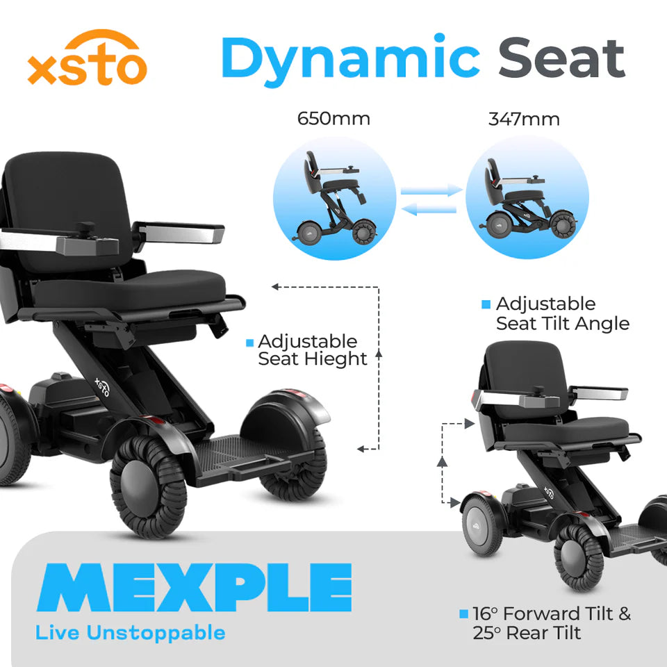 The XSTO M4 electric wheelchair is a foldable, light weight and height adjustable power chair which is designed for short distance travel.